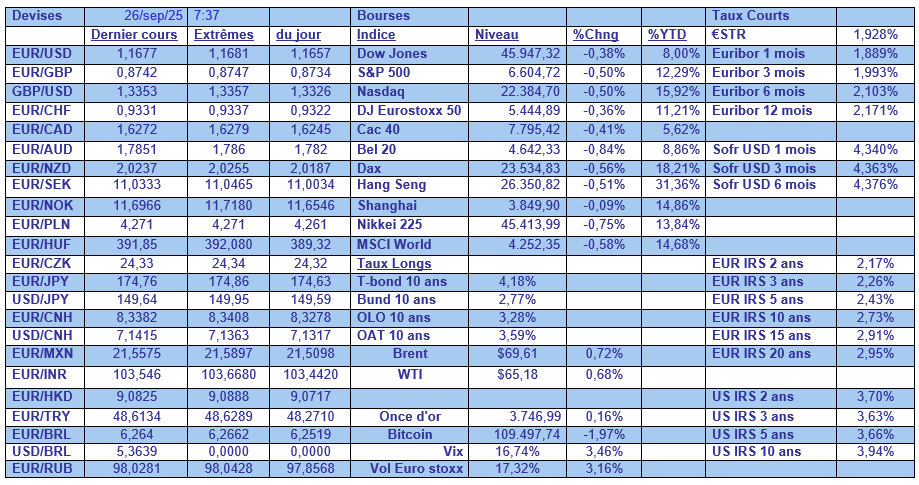 A suivre également la hausse du prix du baril, 4% sur la semaine, après de nouvelles frappes de drones ukrainiens ciblant les infrastructures pétrolières russes, l’avertissement de l’OTAN à la Russie qu’elle est prête à répondre à de futures violations de son espace aérien et la décision de la Russie d’arrêter les exportations de carburant.