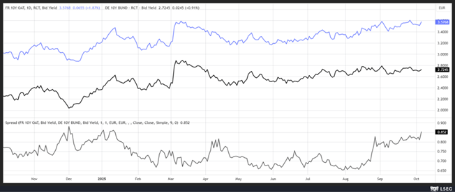 Résultat, le coût de financement pour l’Etat français a augmenté avec comme conséquence que le spread par rapport au Bund 10 ans s’est accentué.