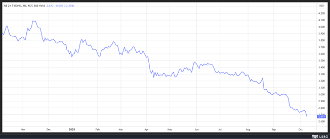 Sans surprise, le taux à 2 ans a reculé après cette annonce, et le dollar néo-zélandais a baissé par rapport au dollar américain.