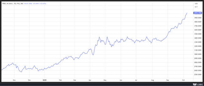 L’or a passé le seuil des 4000 $ sur fond de perspective de baisses des taux aux Etats-Unis, mais surtout, ces derniers jours, à cause du chaos politique en France, au Japon et aux Etats-Unis.