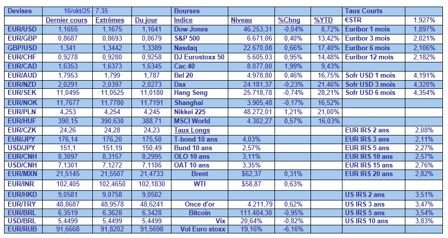 Ces tensions pèsent évidemment sur les marchés financiers, alors que, comme souligné hier, l’économie américaine avait bien résisté à la hausse des tarifs douaniers, et que les résultats des banques américaines sont ressortis assez positivement.