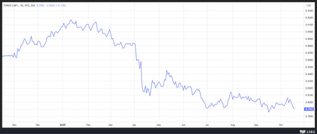 Conséquence du recul du dollar, le franc suisse sert, comme d’habitude, de valeur refuge, et s’est renforcé par rapport au dollar.