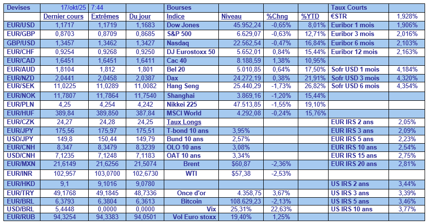 Et, même si cela n’a pas de rapport, le prix du baril a fortement chuté, après l’annonce d’une rencontre Trump-Poutine en Hongrie, même si personne ne sait très bien à quoi cela va aboutir.