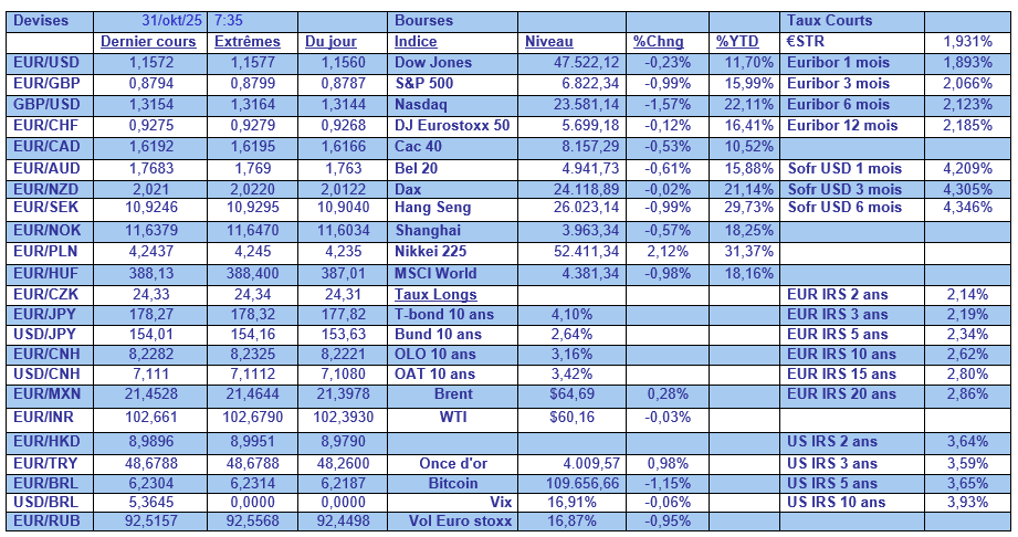 Sur ce point, les chiffres d’inflation attendus ce matin devraient confirmer que l’inflation reste pour le moment stable. Le taux d’inflation global est escompté à 2,1% contre 2,2% en septembre, et l’inflation sous-jacente à 2,3% contre 2,4%.