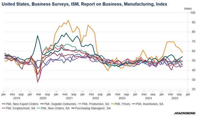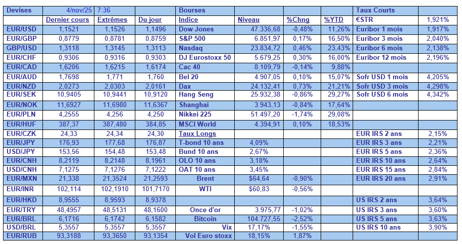Aux Etats-Unis, l’indice ISM manufacturier est resté en territoire négatif pour le huitième consécutif en octobre, à cause de commandes qui sont restées faibles et des problèmes dans les délais de livraison.