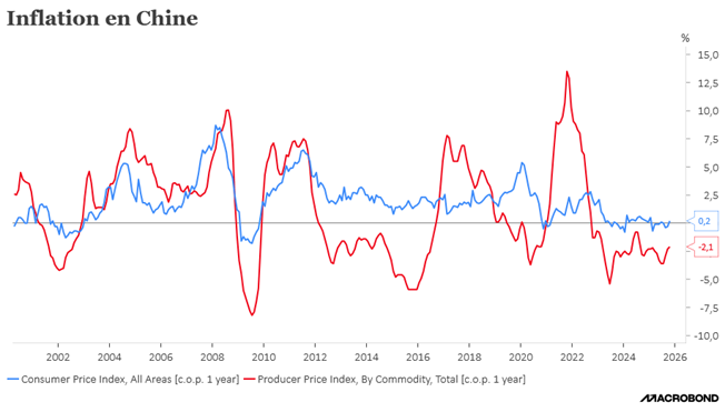 De l’inflation en Chine, et une déflation un peu moindre des prix à la production, mais qui ne dispensera pas les autorités de continuer à réduire les surcapacités de production, et de soutenir la demande.