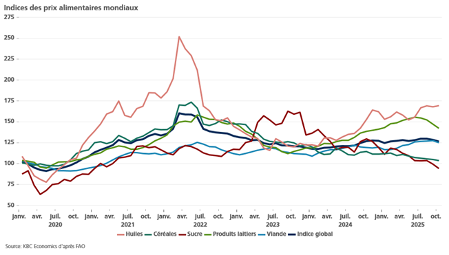 L’indice FAO des prix des produits alimentaires a poursuivi sa baisse en octobre, tous les indices étant en recul à l’exception de celui des huiles végétales.