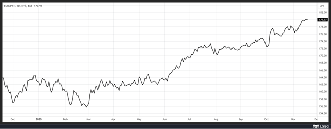 Encore en effet, dans l’attente du plan de relance de Takaichi qui pourrait, selon les dernières rumeurs, s’élever à 129 milliards de dollars, ce qui aggraverait l’endettement déjà très élevé du Japon.