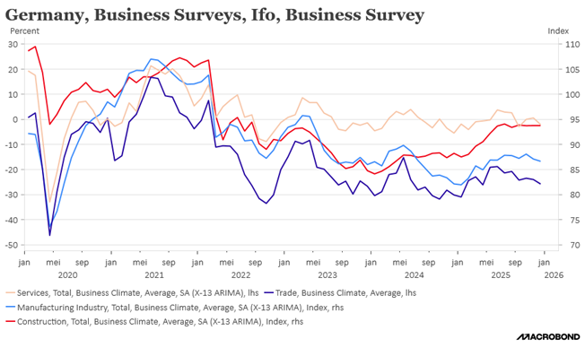 Et le début d’année 2026 sera du même acabit selon Clemens Fuest, président de l’IFO, qui constate que les entreprises envisagent le premier semestre 2026 avec plus de pessimisme.