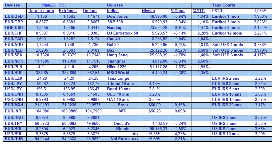 Mais, et cela conforte le scénario d’un statu quo de la part de la FED lors de sa réunion de janvier, même s’il a reculé passant de 65,4 à 64,3, le sous-indice des prix payés par les entreprises demeure nettement trop élevé par rapport à l’objectif de la FED.