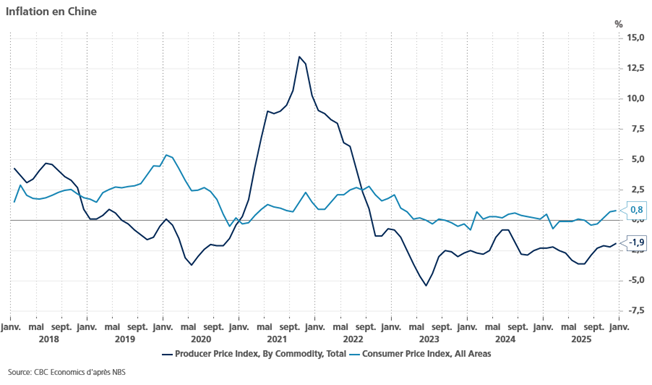 L’inflation en Chine a augmenté, mais les prix à la production demeurent largement en territoire négatif.