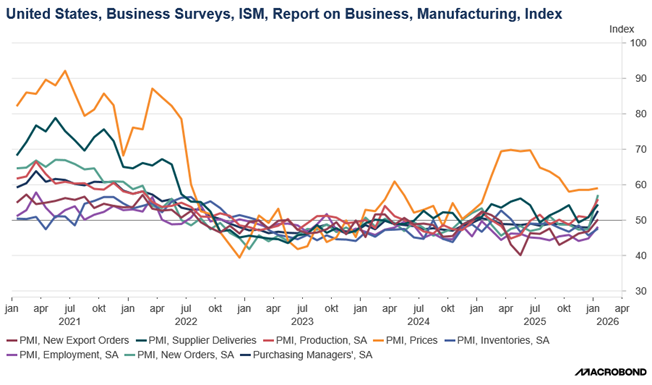 En tout cas, l’indice ISM manufacturier a rebondi nettement en janvier en passant de 47,9 à 52,6.