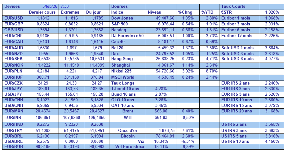 Les rendements obligataires sont aussi repartis à la hausse, car la position de Warsh pourrait entraîner une pentification de la courbe aux Etats-Unis.