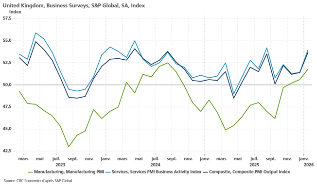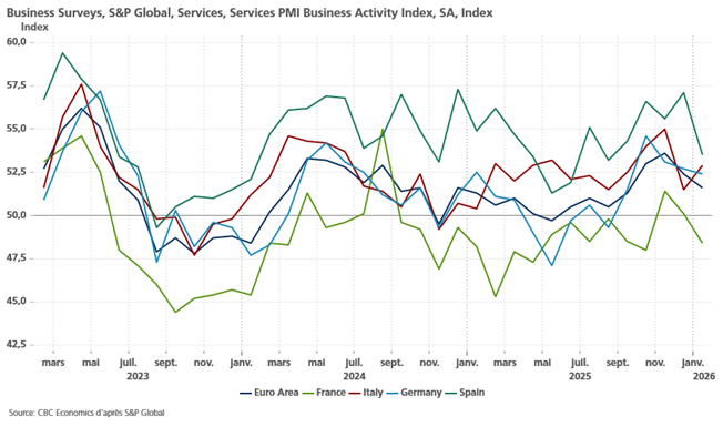 L’indice PMI des services est passé de 51,4 en décembre à 54 en janvier, son plus haut niveau depuis août 2025.