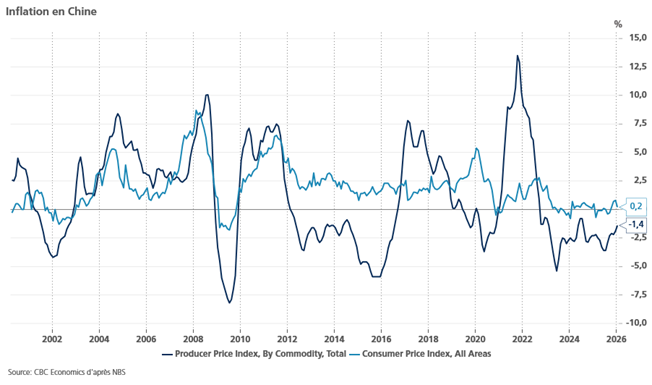 A propos de la déflation qui persiste en Chine, même si les prix à la production sont un peu moins négatifs, mais reflètent toujours une demande intérieure atone.