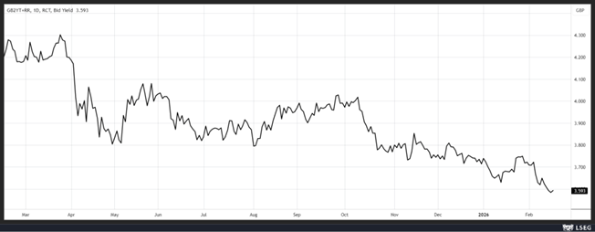 Le rendement de l’obligation en sterling à 2 ans a reculé après ces chiffres reflétant la hausse de la probabilité d’une baisse des taux en mars.