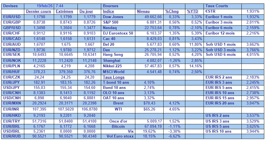 Le marché continue de tabler sur une baisse des taux, pas avant juin ou juillet, et une deuxième baisse en septembre, mais les divergences de vue étalées ainsi au grand jour entretiennent le flou. Ce statu quo attendu explique pourquoi le dollar se renforce.