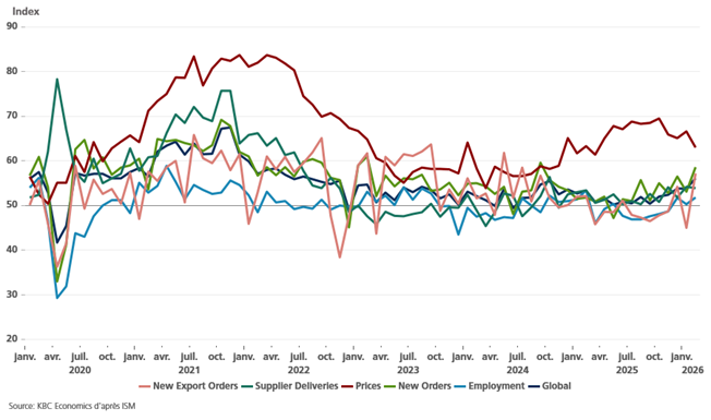 Les nouvelles commandes ont également contribué à la hausse de cet indice avec un sous-indice qui est passé de 53,1 en janvier à 58,6.