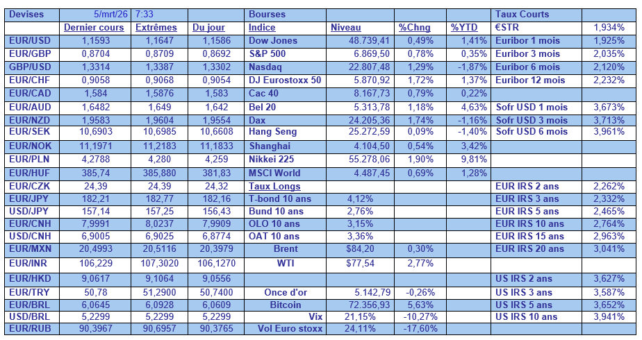 Les actions asiatiques se sont redressées ce matin, ce qui indique une reprise timide de l’appétit pour le risque, avec en particulier l’indice de la Corée du Sud qui a bondi de 10 % effaçant une partie de sa chute de début de semaine.