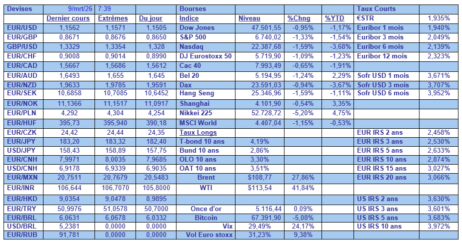 Emballement, ce matin, du prix du baril, qui a dépassé les 100 $, ce qui entraîne les bourses nettement dans le rouge, une poursuite de la hausse des taux, ainsi que celle du dollar.