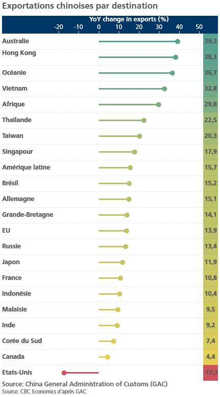 De leur côté, les importations ont augmenté de 19,8 % en janvier-février, portées évidemment par la période du Nouvel An, un chiffre bien supérieur à la hausse de 5,7 % enregistrée en décembre.