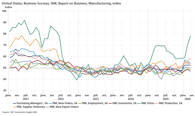 L’industrie aux Etats-Unis reste bien orientée avec un indice ISM manufacturier qui a légèrement progressé et demeure au-dessus des 50.