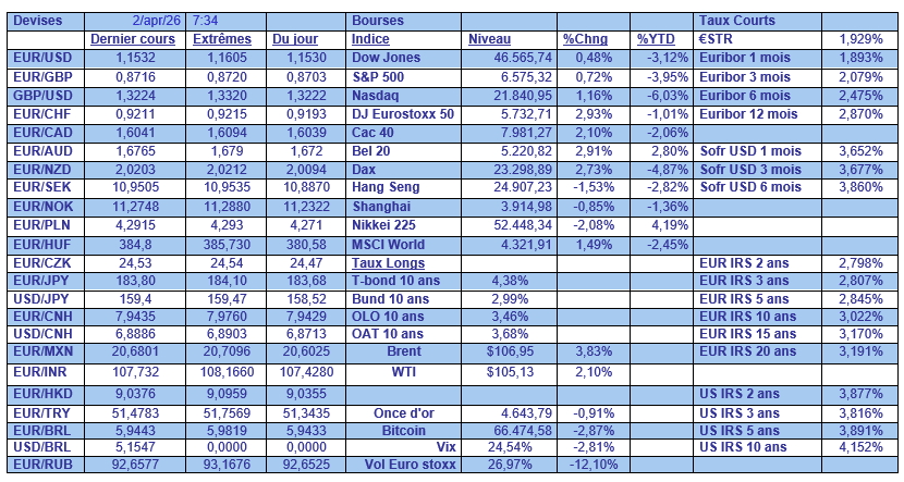 Seule consolation selon Timo Wollmershaeuser, responsable des prévisions à l’institut IFO « le choc des prix de l’énergie déclenché par la guerre contre l’Iran frappe durement la reprise, mais dans le même temps, la politique budgétaire expansionniste soutient l’économie nationale et empêche une chute plus importante ».