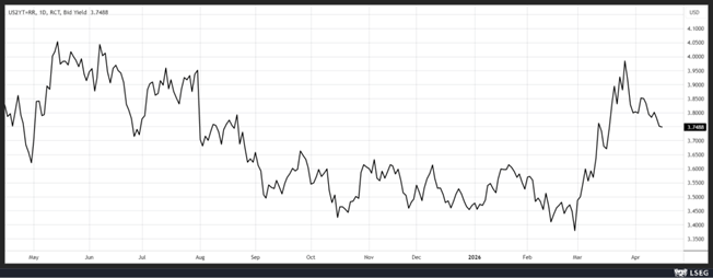 Le rendement du Treasury à 2 ans n’a pas réagi à ce chiffre et reflète toujours le sentiment que la FED devrait adopter le statu quo pendant encore un bon moment.