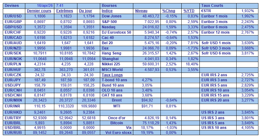 Il faut dire que les premiers résultats des entreprises sont encourageants, ce qui a permis aux indices S&P500 et Nasdaq d’afficher de nouveaux records, et au Nikkei de connaître une hausse de plus de 2 % ce matin.