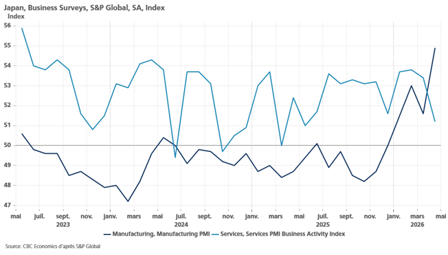L’indice PMI manufacturier au Japon a fait un bond en passant de 51,6 en mars à 54,9 en avril, atteignant ainsi son plus haut niveau depuis janvier 2022.